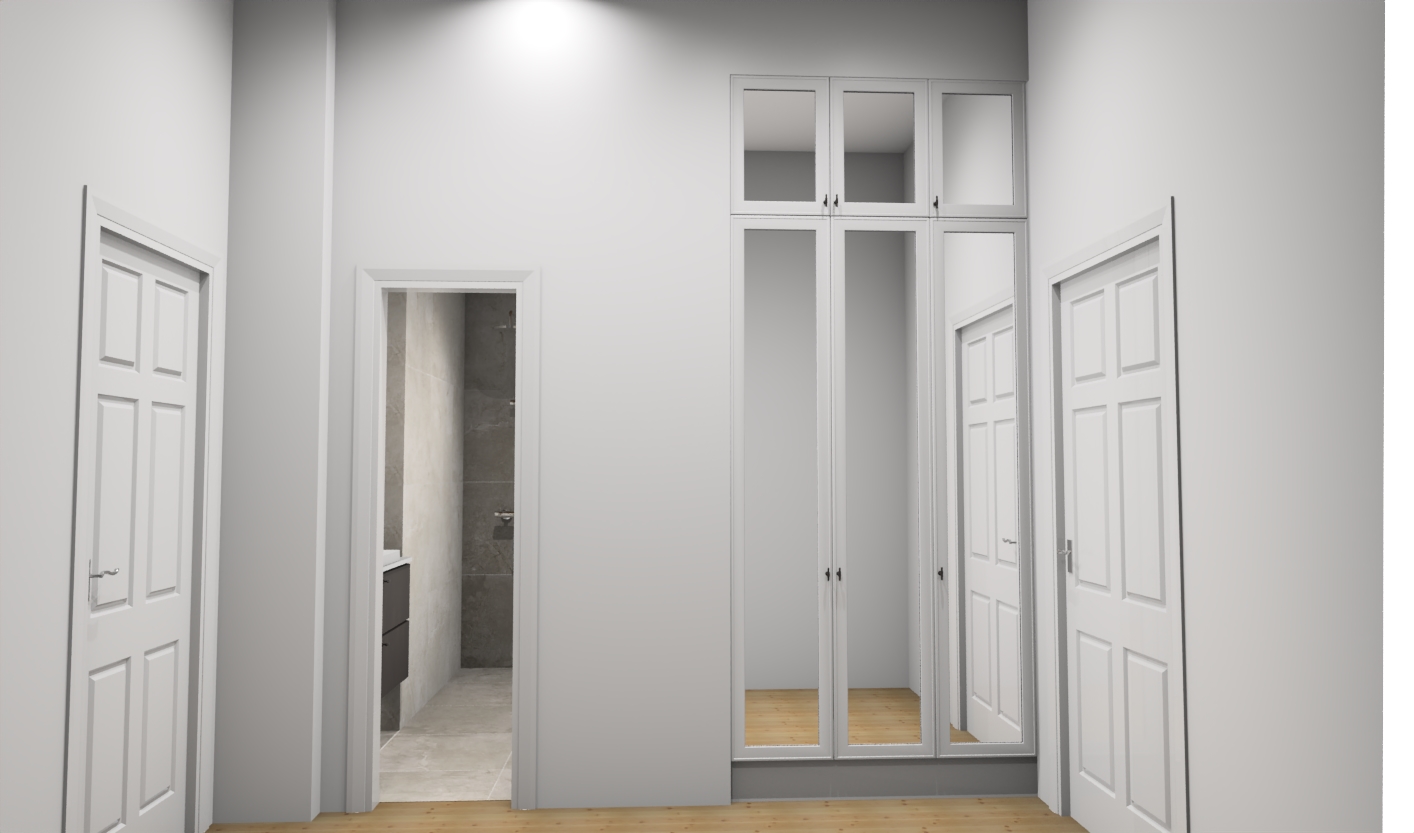Mittatilaustyö pääsee oikeuksiinsa koloissa ja syvennyksissä, joihin valmiskalusteet eivät istu sopivasti. Valmistimme vanhan talon eteiseen peiliovellisen kaapiston, joka kohoaa korkeuksiin. Tyylinsä ja mittasuhteidensa puolesta se näyttää siltä kuin olisi ollut paikallaan aina.